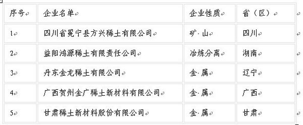 工信部公示第四批稀土行业准入企业名单