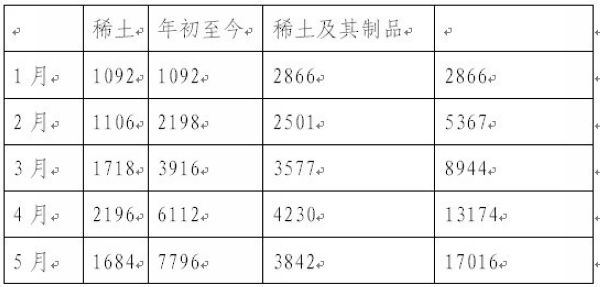 中国海关公布的2013年1-5月份稀土出口数据一览表(单位均为吨)