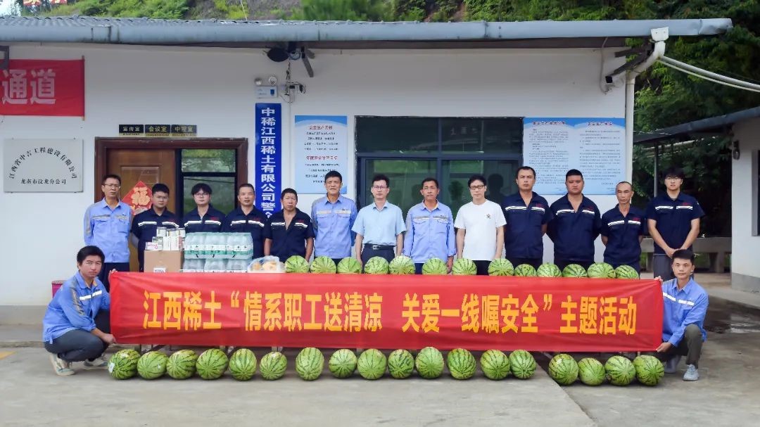 为切实维护公司广大员工职业安全与健康权益,促进稀土矿山和冶炼车间安全生产和平安度夏,做好公司一线员工的防暑工作,连日来,公司组织开展“情系职工送清凉 关爱一线嘱安全”主题活动,为坚守在高温下的一线员工送去丝丝清凉和亲切关怀。